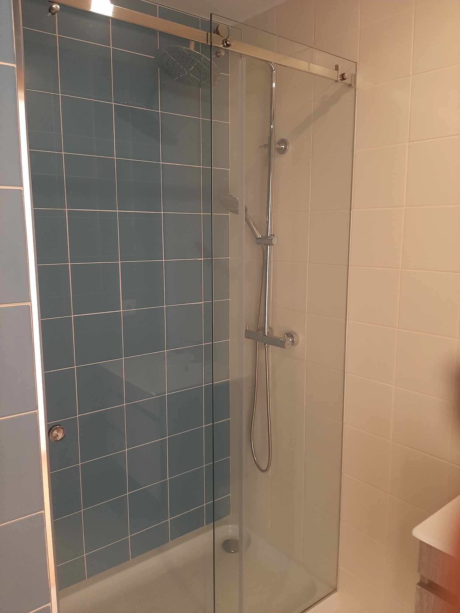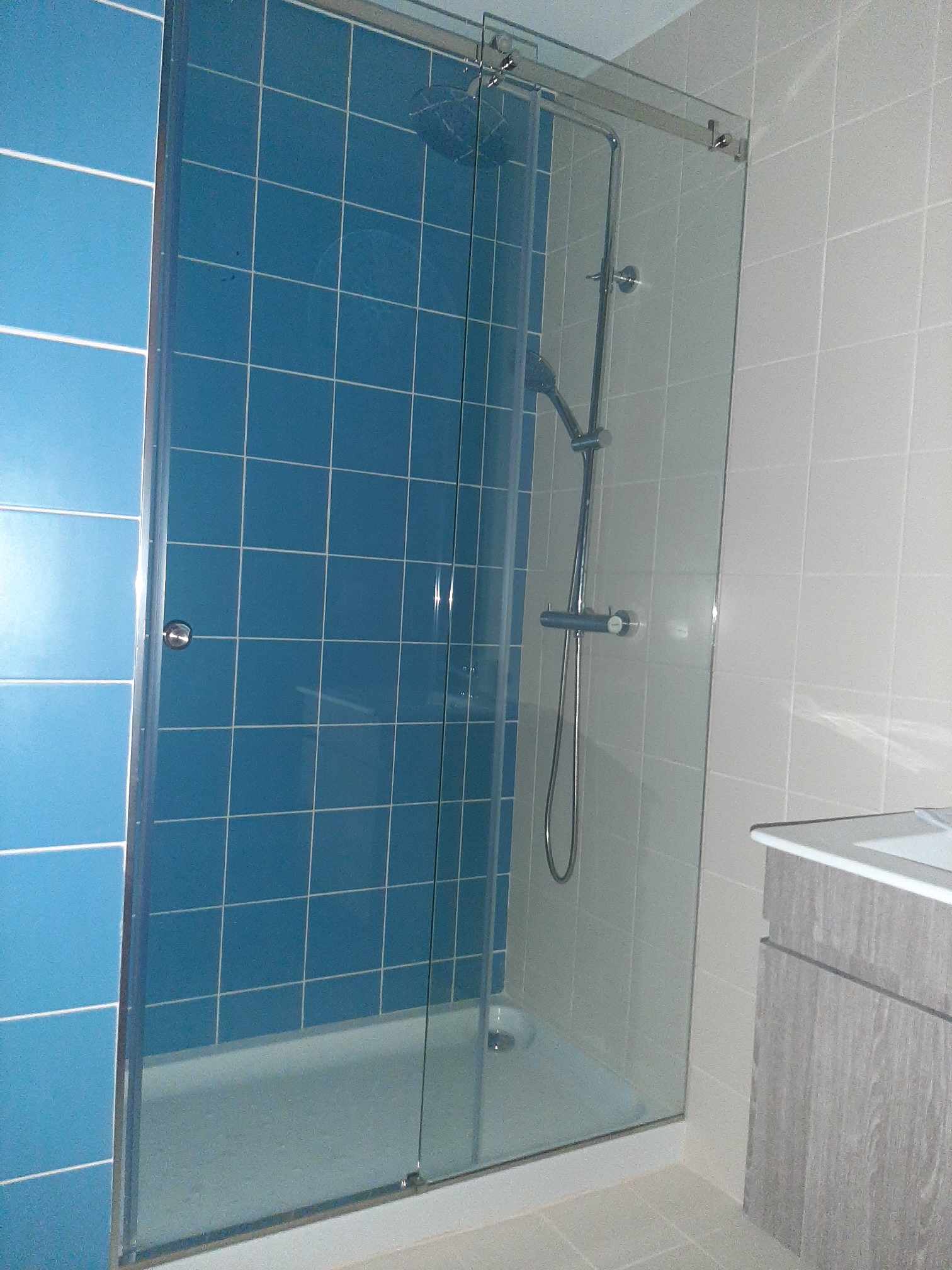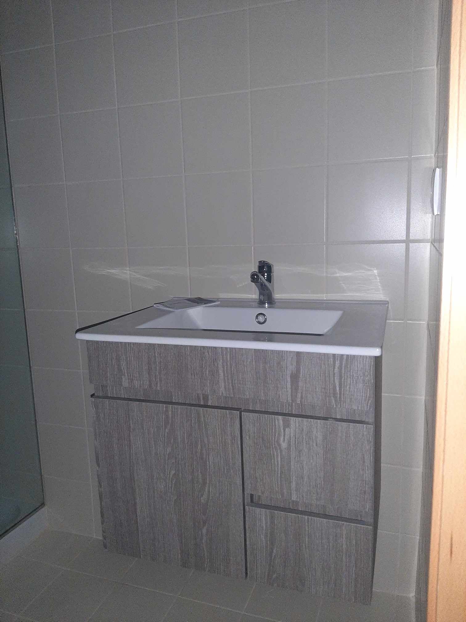 A casa de banho completa, com base de chuveiro, complementa o conforto deste apartamento.