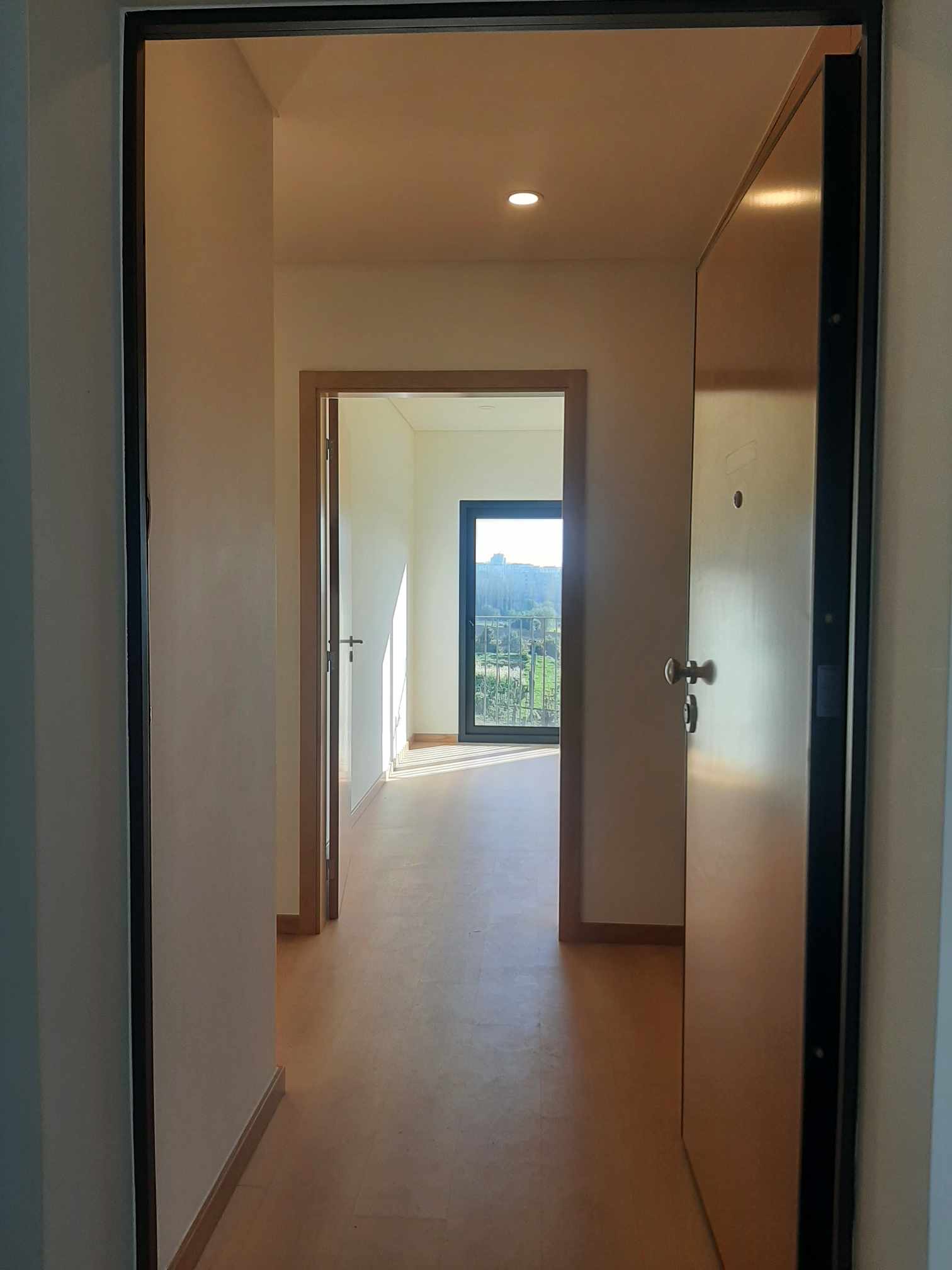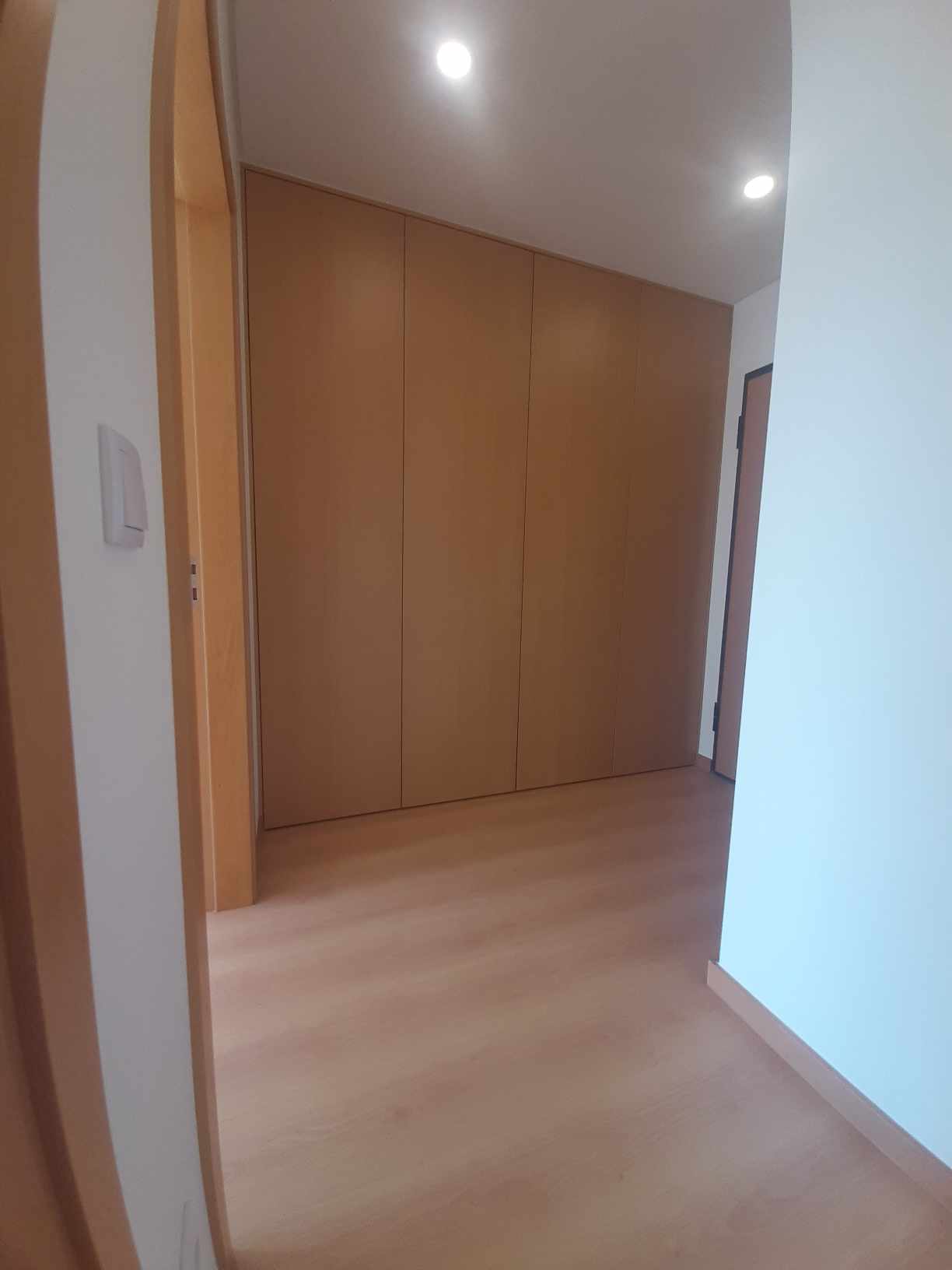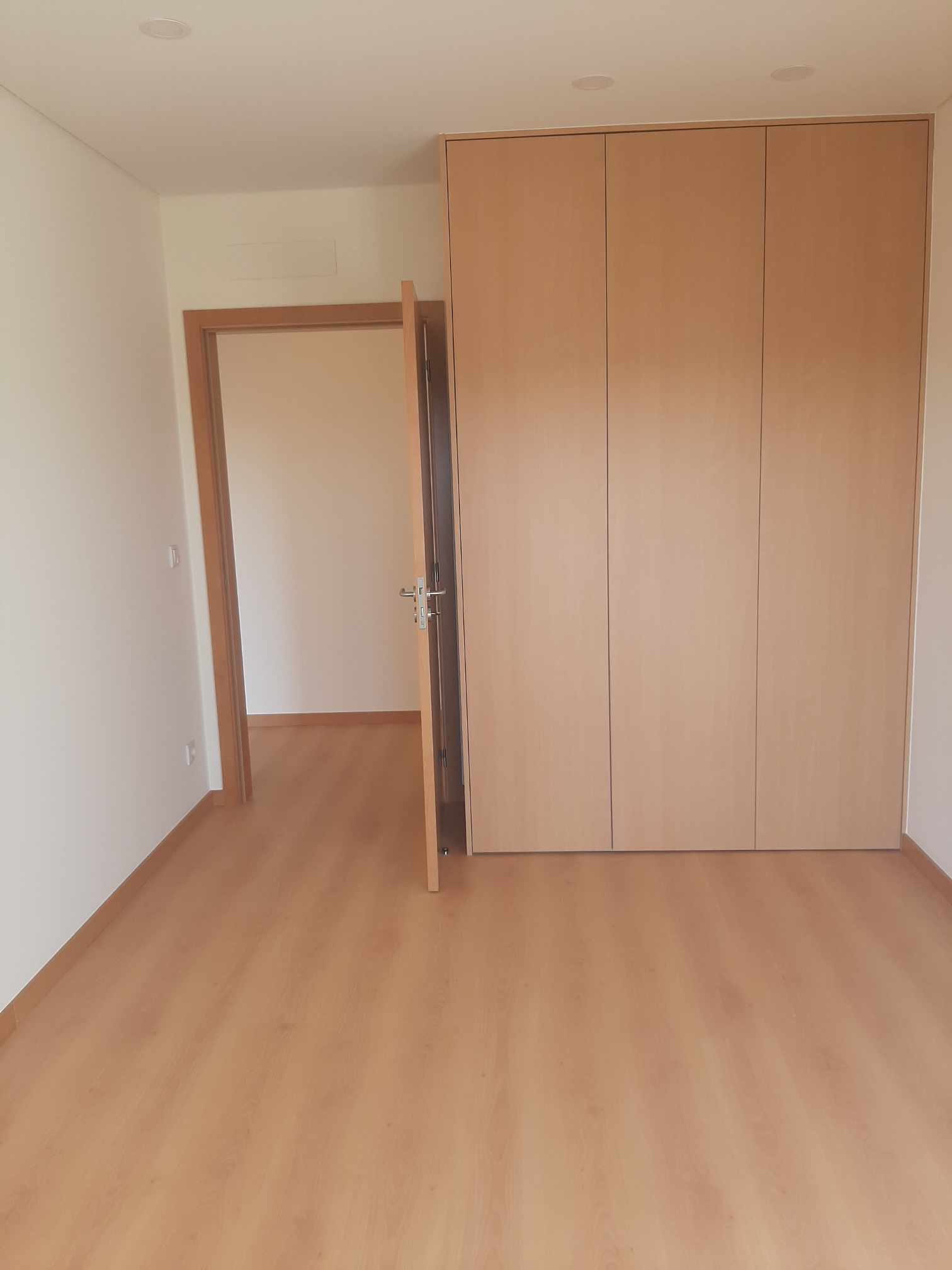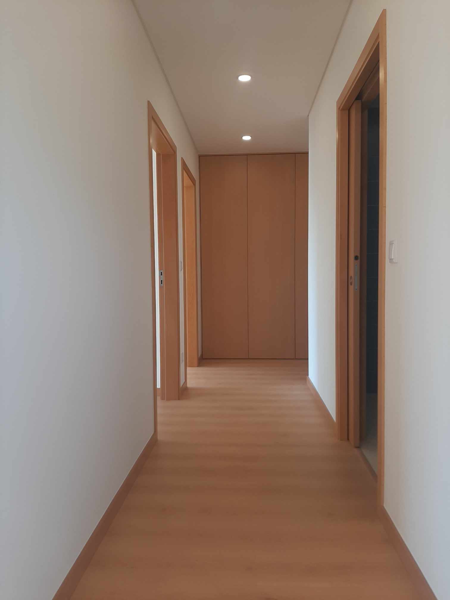 Ao entrar, serás recebido por um hall espaçoso com um grande roupeiro embutido.